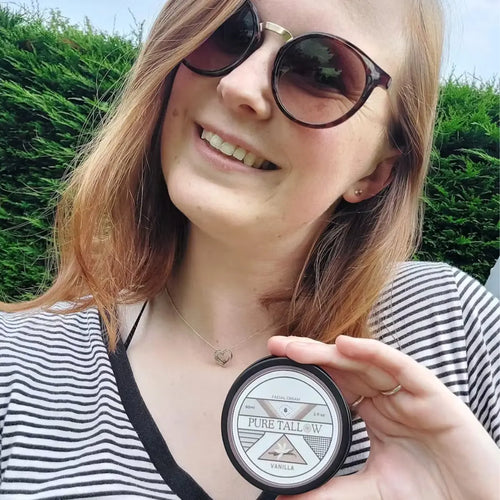 Ja! Wir verwenden 100% organisches, grasgefüttertes Talg , das von ethisch aufgezogenen Rindern stammt. Grasgefüttertes Talg ist reich an Omega-3-Fettsäuren, konjugierter Linolsäure (CLA) und fettlöslichen Vitaminen, was es vorteilhafter für Ihre Haut macht im Vergleich zu herkömmlichem Talg.